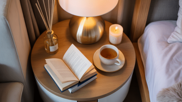 💡 Pinterest tip: Style your nightstand with a diffuser, open book, and cozy throw — perfect for a “serene moment” pin.
